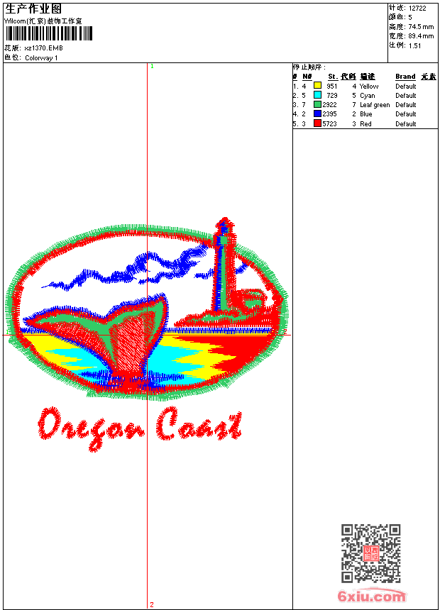 - emb花版参数: 大小:80.50 KB / 尺寸:89*74[毫米] / 针数:12722针 / 线色:5 / 格式:emb / 版本:9