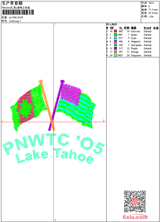 - 版带文件需绣花软件方可打开,可配色打印导出各种格式或直接上机绣。如无绣花软件可下载1:1模拟效果图。
