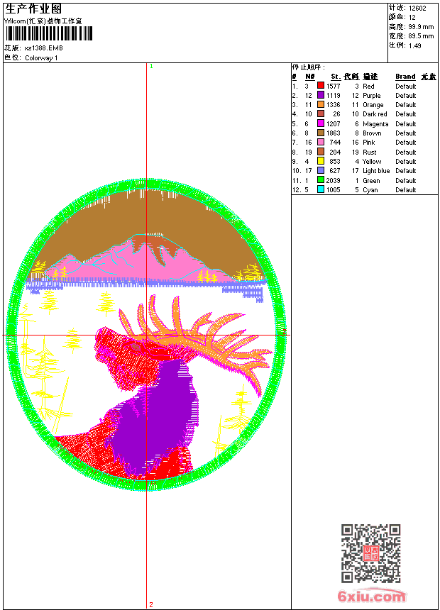 - 版带文件需绣花软件方可打开,可配色打印导出各种格式或直接上机绣。如无绣花软件可下载1:1模拟效果图。