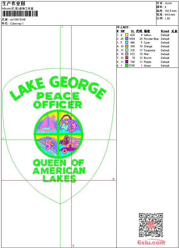 - 版带文件需绣花软件方可打开,可配色打印导出各种格式或直接上机绣。如无绣花软件可下载1:1模拟效果图。