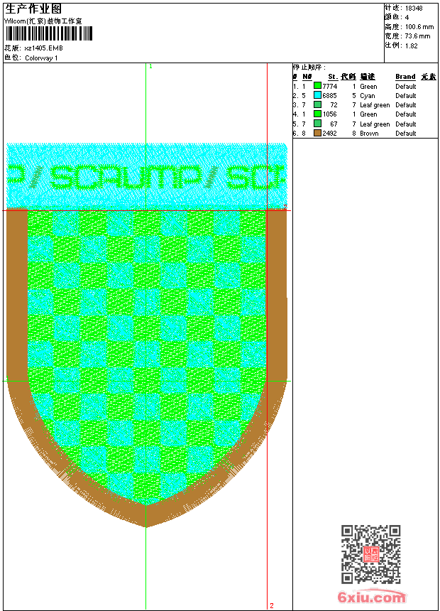 - emb花版参数: 大小:51.50 KB / 尺寸:74*101[毫米] / 针数:18348针 / 线色:4 / 格式:emb / 版本:9