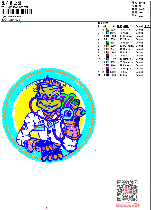 - emb花版参数: 大小:236.00 KB / 尺寸:140*140[毫米] / 针数:50615针 / 线色:15 / 格式:emb / 版本:9