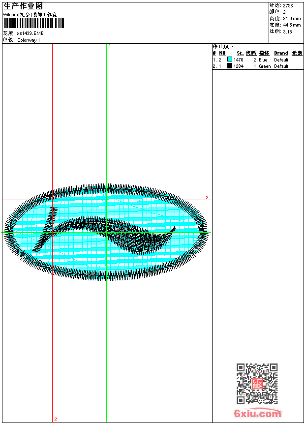 - emb花版参数: 大小:23.50 KB / 尺寸:44*21[毫米] / 针数:2755针 / 线色:2 / 格式:emb / 版本:9