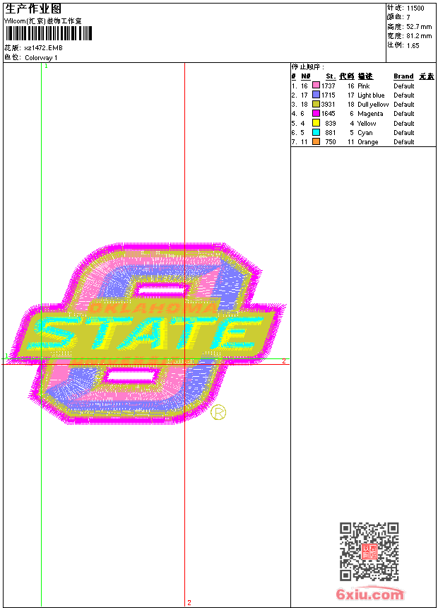 - 版带文件需绣花软件方可打开,可配色打印导出各种格式或直接上机绣。如无绣花软件可下载1:1模拟效果图。