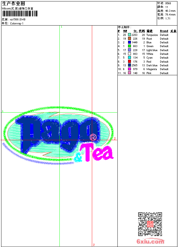 - 版带文件需绣花软件方可打开,可配色打印导出各种格式或直接上机绣。如无绣花软件可下载1:1模拟效果图。