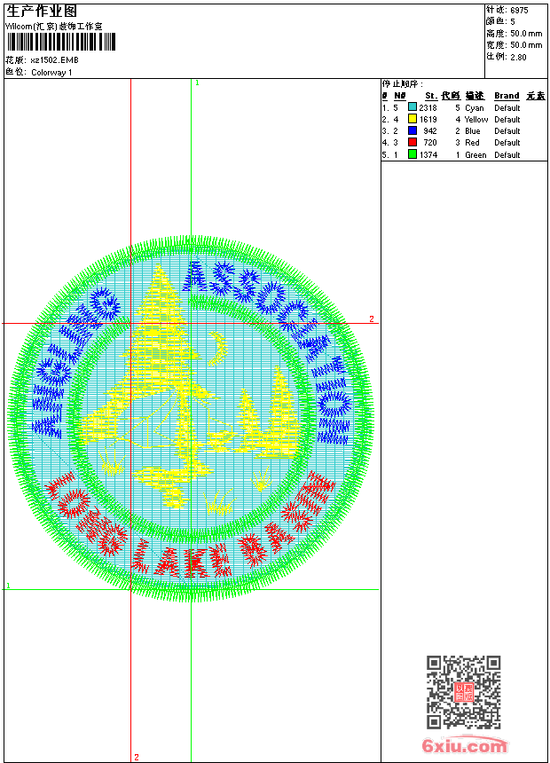 - emb花版参数: 大小:50.00 KB / 尺寸:50*50[毫米] / 针数:6975针 / 线色:5 / 格式:emb / 版本:9