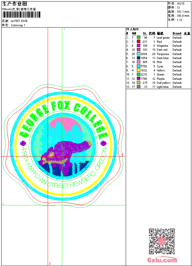 - emb花版参数: 大小:95.00 KB / 尺寸:101*103[毫米] / 针数:16315针 / 线色:13 / 格式:emb / 版本:9