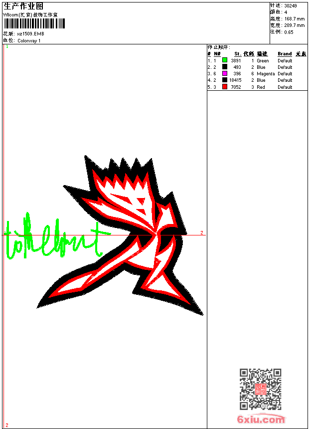 - 版带文件需绣花软件方可打开,可配色打印导出各种格式或直接上机绣。如无绣花软件可下载1:1模拟效果图。