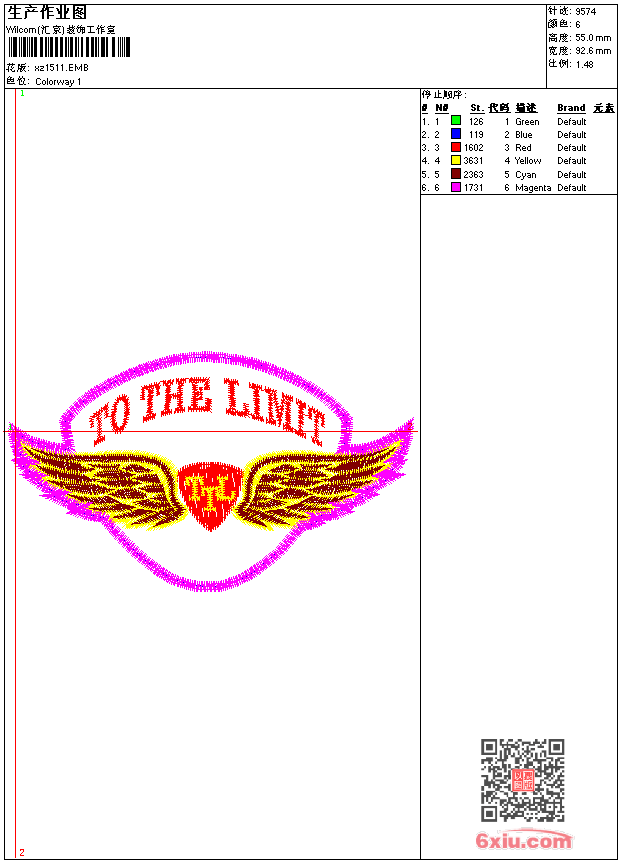 - emb花版参数: 大小:58.00 KB / 尺寸:93*55[毫米] / 针数:9574针 / 线色:6 / 格式:emb / 版本:9