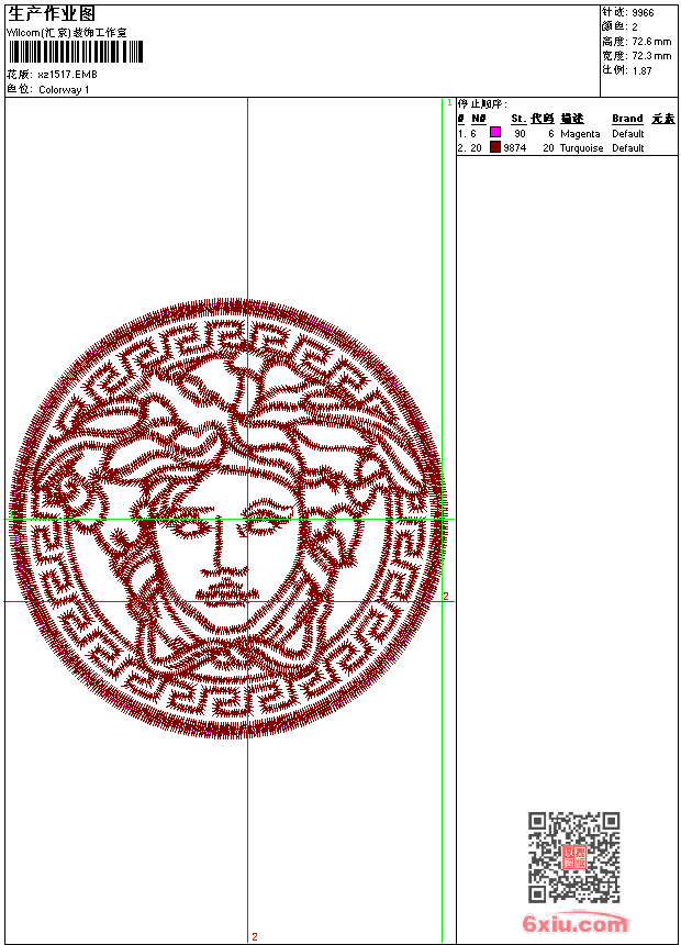 - 版带文件需绣花软件方可打开,可配色打印导出各种格式或直接上机绣。如无绣花软件可下载1:1模拟效果图。