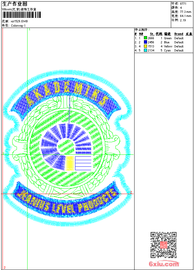 - emb花版参数: 大小:75.50 KB / 尺寸:64*77[毫米] / 针数:8771针 / 线色:4 / 格式:emb / 版本:9