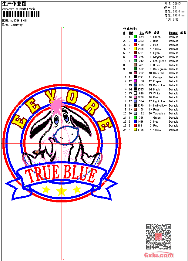 - 版带文件需绣花软件方可打开,可配色打印导出各种格式或直接上机绣。如无绣花软件可下载1:1模拟效果图。