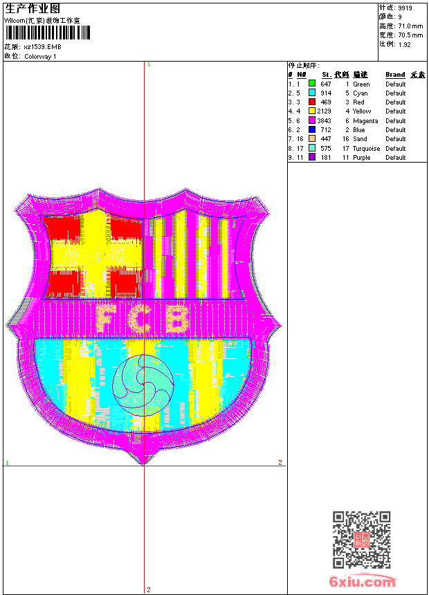 - emb花版参数: 大小:54.00 KB / 尺寸:70*71[毫米] / 针数:9918针 / 线色:9 / 格式:emb / 版本:9