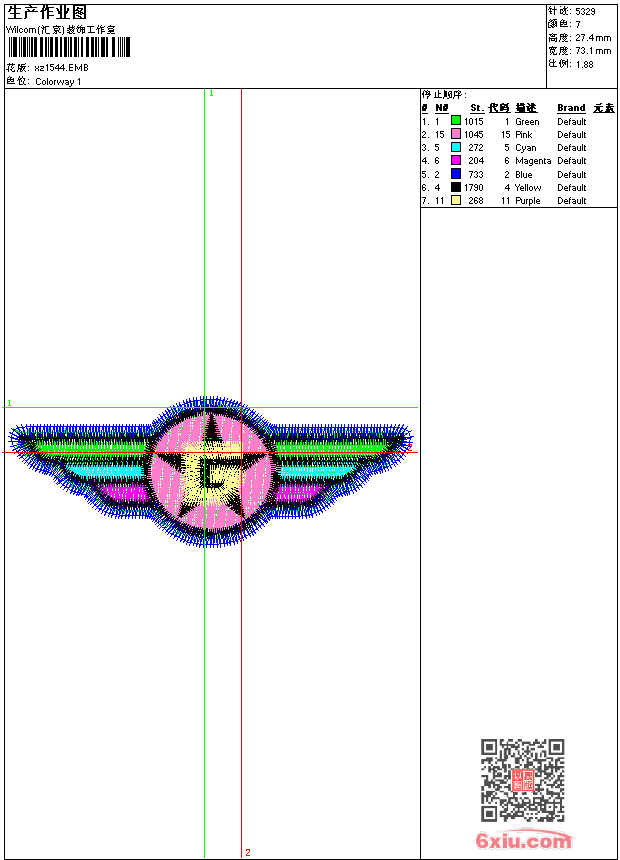 - emb花版参数: 大小:44.50 KB / 尺寸:73*27[毫米] / 针数:5329针 / 线色:7 / 格式:emb / 版本:9