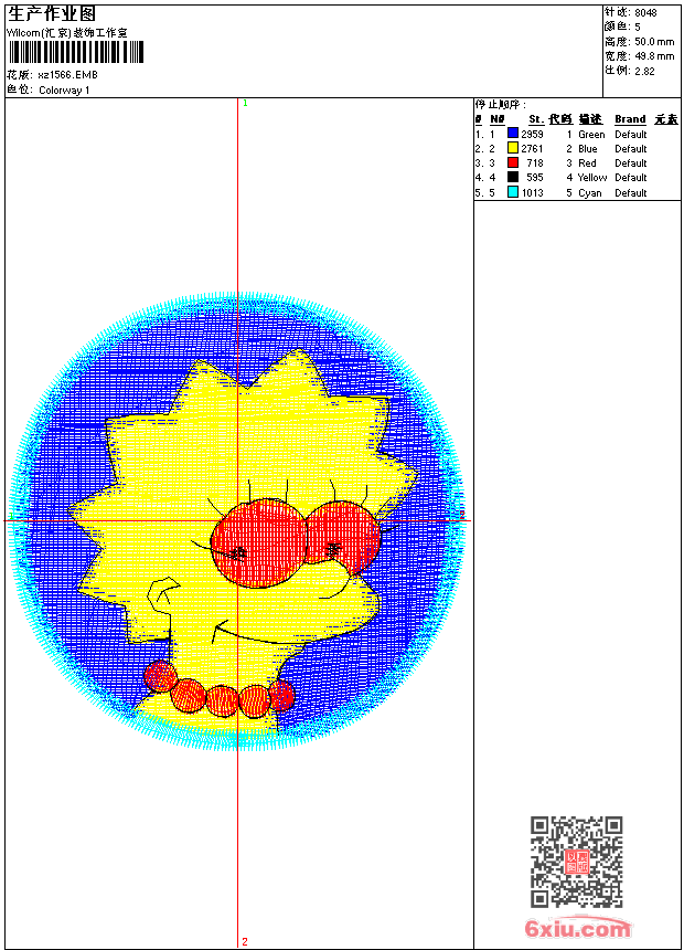- emb花版参数: 大小:41.00 KB / 尺寸:50*50[毫米] / 针数:8048针 / 线色:5 / 格式:emb / 版本:9