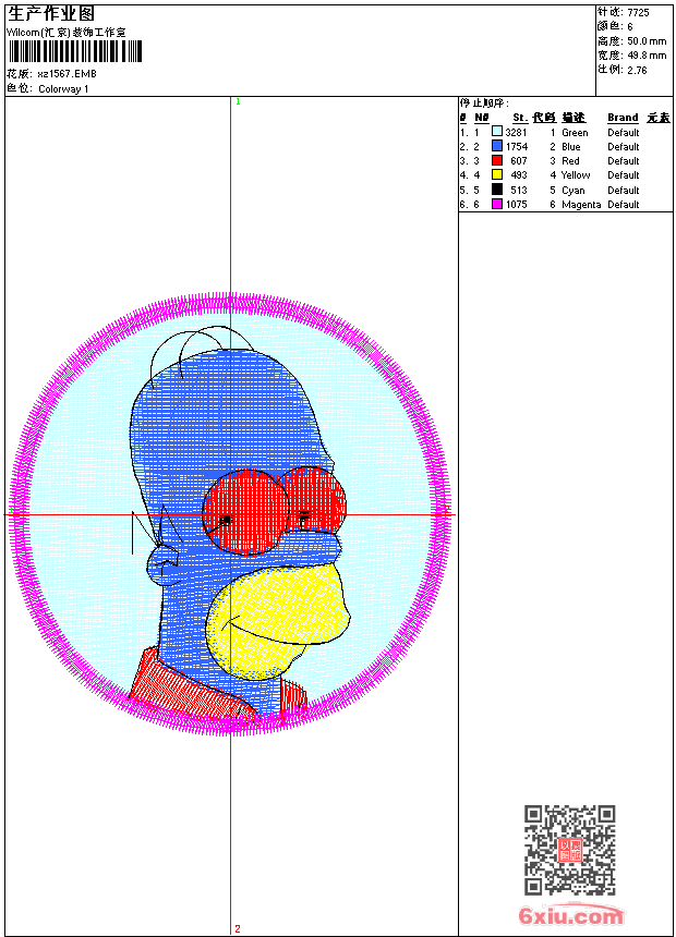 - emb花版参数: 大小:41.00 KB / 尺寸:50*50[毫米] / 针数:7725针 / 线色:6 / 格式:emb / 版本:9