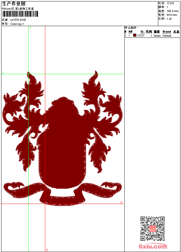 - emb花版参数: 大小:57.50 KB / 尺寸:95*106[毫米] / 针数:17379针 / 线色:1 / 格式:emb / 版本:9
