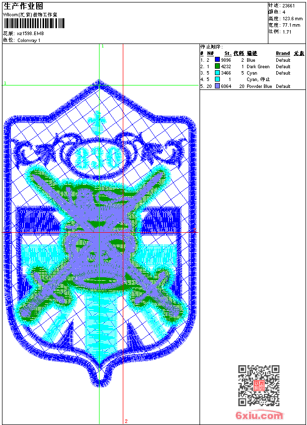 - emb花版参数: 大小:101.50 KB / 尺寸:77*124[毫米] / 针数:23661针 / 线色:4 / 格式:emb / 版本:9