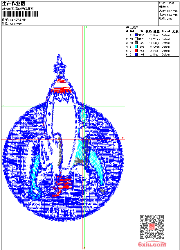 - 版带文件需绣花软件方可打开,可配色打印导出各种格式或直接上机绣。如无绣花软件可下载1:1模拟效果图。