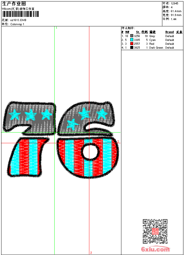- 版带文件需绣花软件方可打开,可配色打印导出各种格式或直接上机绣。如无绣花软件可下载1:1模拟效果图。