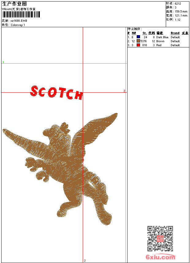 - 版带文件需绣花软件方可打开,可配色打印导出各种格式或直接上机绣。如无绣花软件可下载1:1模拟效果图。
