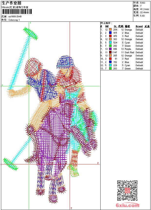 - 版带文件需绣花软件方可打开,可配色打印导出各种格式或直接上机绣。如无绣花软件可下载1:1模拟效果图。