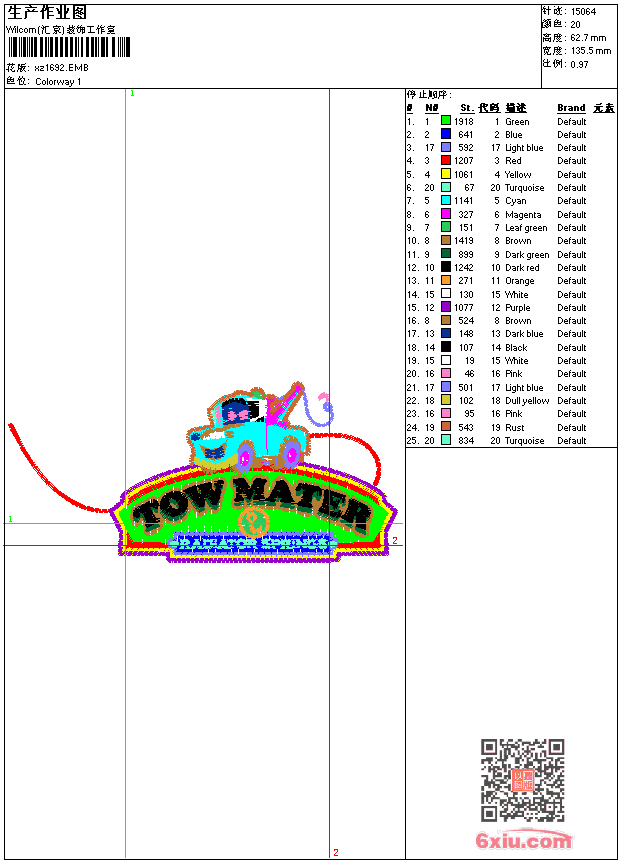 - 版带文件需绣花软件方可打开,可配色打印导出各种格式或直接上机绣。如无绣花软件可下载1:1模拟效果图。