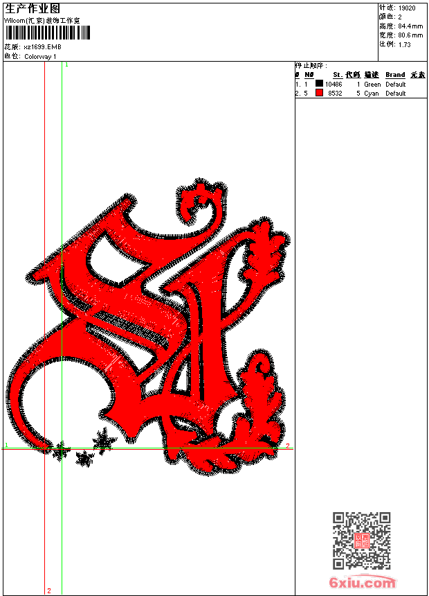 - 版带文件需绣花软件方可打开,可配色打印导出各种格式或直接上机绣。如无绣花软件可下载1:1模拟效果图。