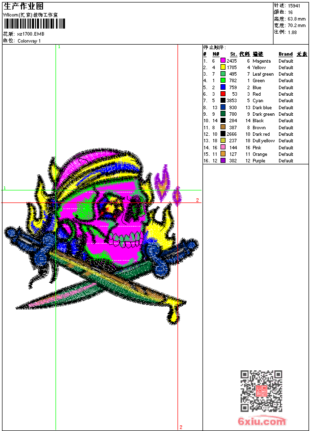 - emb花版参数: 大小:106.00 KB / 尺寸:70*64[毫米] / 针数:15941针 / 线色:16 / 格式:emb / 版本:9