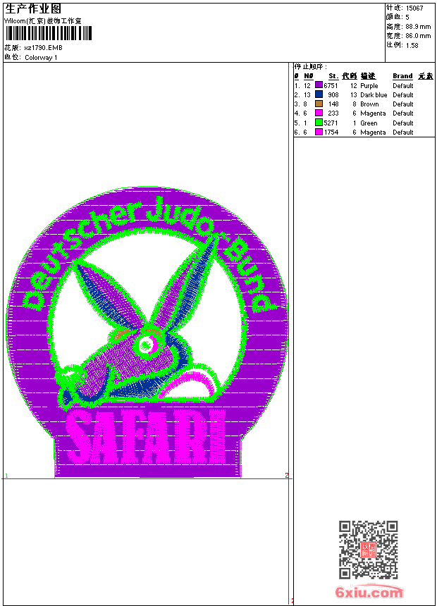 - 版带文件需绣花软件方可打开,可配色打印导出各种格式或直接上机绣。如无绣花软件可下载1:1模拟效果图。