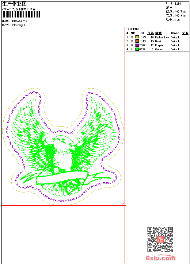 - 版带文件需绣花软件方可打开,可配色打印导出各种格式或直接上机绣。如无绣花软件可下载1:1模拟效果图。