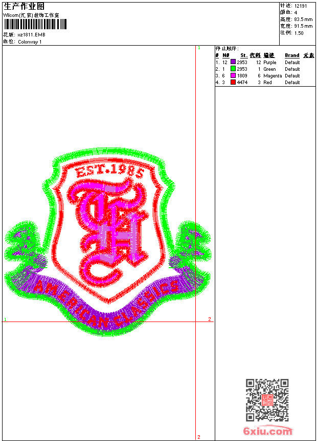 - emb花版参数: 大小:90.00 KB / 尺寸:91*83[毫米] / 针数:12191针 / 线色:4 / 格式:emb / 版本:9