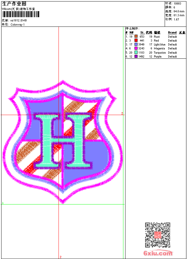 - emb花版参数: 大小:59.00 KB / 尺寸:81*84[毫米] / 针数:10883针 / 线色:6 / 格式:emb / 版本:9