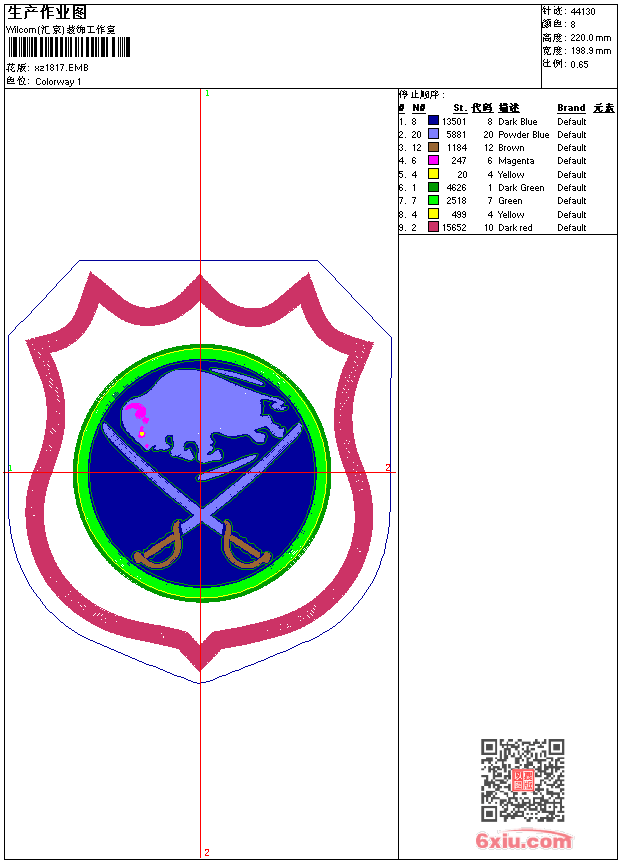 - emb花版参数: 大小:143.50 KB / 尺寸:199*220[毫米] / 针数:44130针 / 线色:8 / 格式:emb / 版本:9
