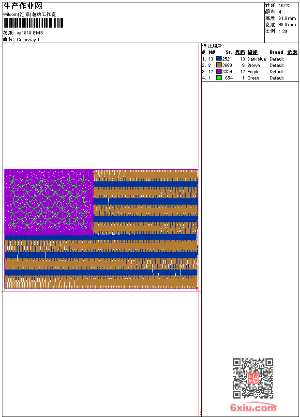 - 版带文件需绣花软件方可打开,可配色打印导出各种格式或直接上机绣。如无绣花软件可下载1:1模拟效果图。