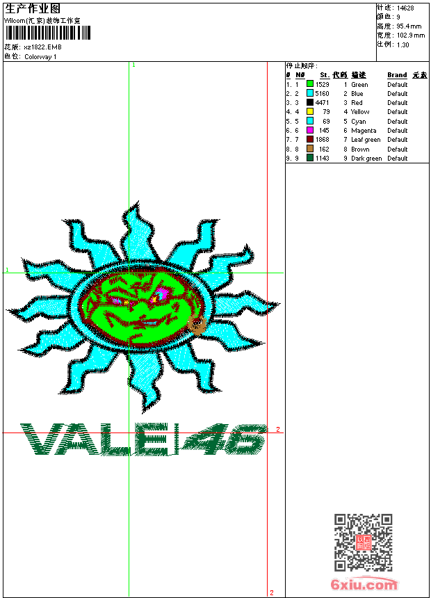 - 版带文件需绣花软件方可打开,可配色打印导出各种格式或直接上机绣。如无绣花软件可下载1:1模拟效果图。