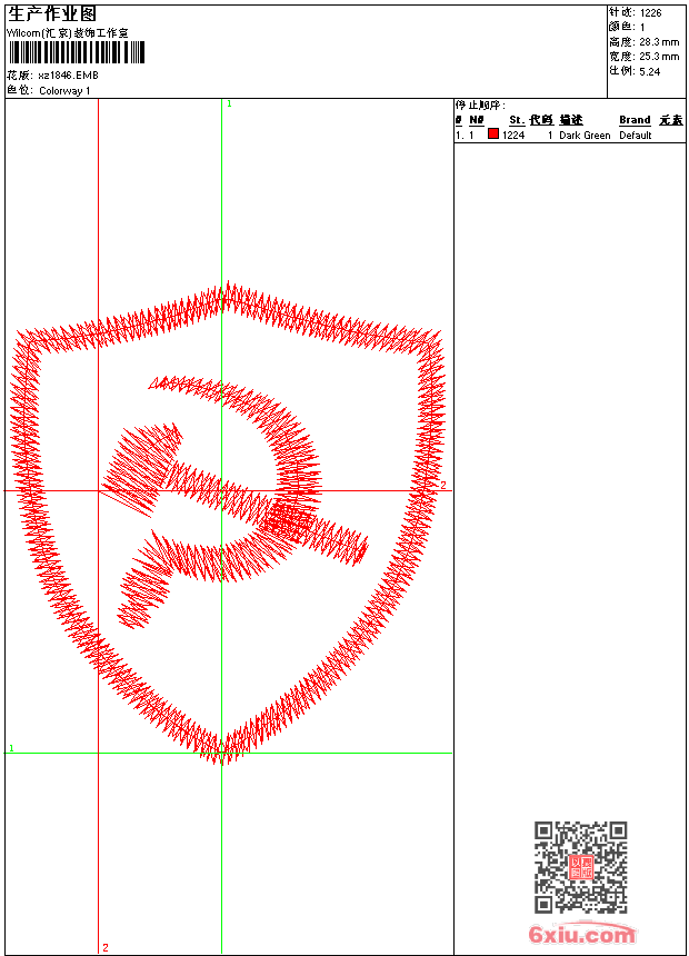 - emb花版参数: 大小:19.00 KB / 尺寸:25*28[毫米] / 针数:1226针 / 线色:1 / 格式:emb / 版本:9