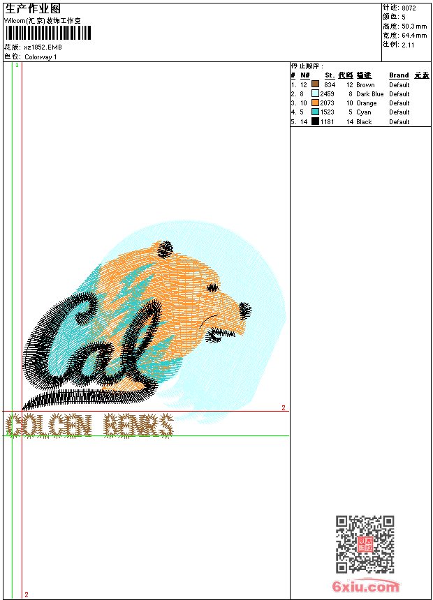 - 版带文件需绣花软件方可打开,可配色打印导出各种格式或直接上机绣。如无绣花软件可下载1:1模拟效果图。