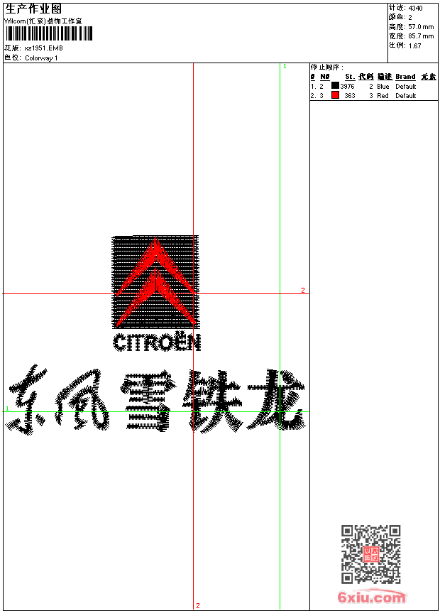 - emb花版参数: 大小:32.00 KB / 尺寸:86*57[毫米] / 针数:4340针 / 线色:2 / 格式:emb / 版本:9
