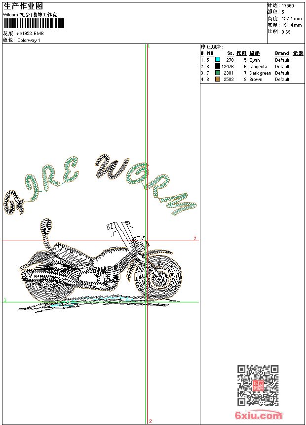 - 版带文件需绣花软件方可打开,可配色打印导出各种格式或直接上机绣。如无绣花软件可下载1:1模拟效果图。