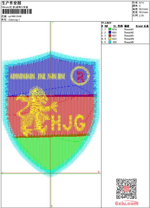 - emb花版参数: 大小:35.00 KB / 尺寸:51*66[毫米] / 针数:6711针 / 线色:5 / 格式:emb / 版本:9