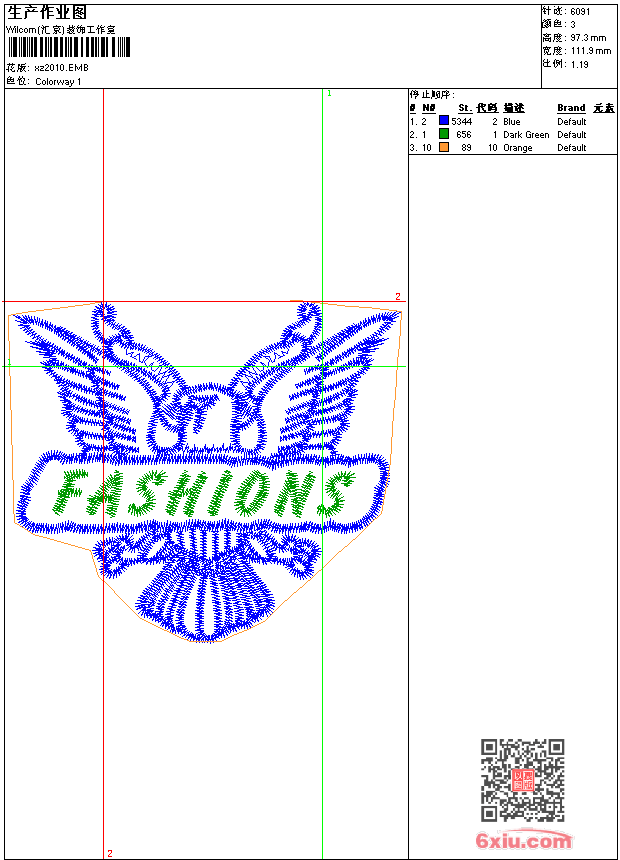 - emb花版参数: 大小:66.00 KB / 尺寸:112*97[毫米] / 针数:6091针 / 线色:3 / 格式:emb / 版本:9