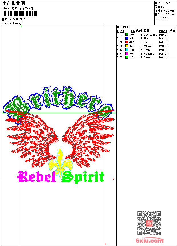 - 版带文件需绣花软件方可打开,可配色打印导出各种格式或直接上机绣。如无绣花软件可下载1:1模拟效果图。