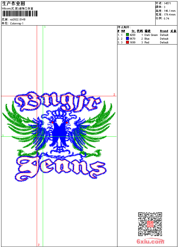 - 版带文件需绣花软件方可打开,可配色打印导出各种格式或直接上机绣。如无绣花软件可下载1:1模拟效果图。