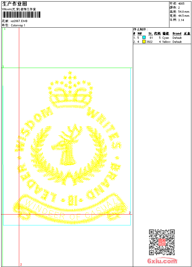- emb花版参数: 大小:48.00 KB / 尺寸:45*55[毫米] / 针数:4005针 / 线色:2 / 格式:emb / 版本:9