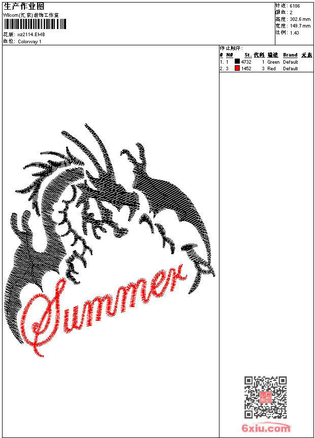- 版带文件需绣花软件方可打开,可配色打印导出各种格式或直接上机绣。如无绣花软件可下载1:1模拟效果图。