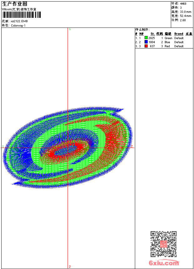 - emb花版参数: 大小:29.50 KB / 尺寸:52*33[毫米] / 针数:4468针 / 线色:3 / 格式:emb / 版本:9