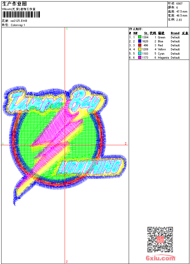 - emb花版参数: 大小:52.50 KB / 尺寸:49*47[毫米] / 针数:6907针 / 线色:6 / 格式:emb / 版本:9