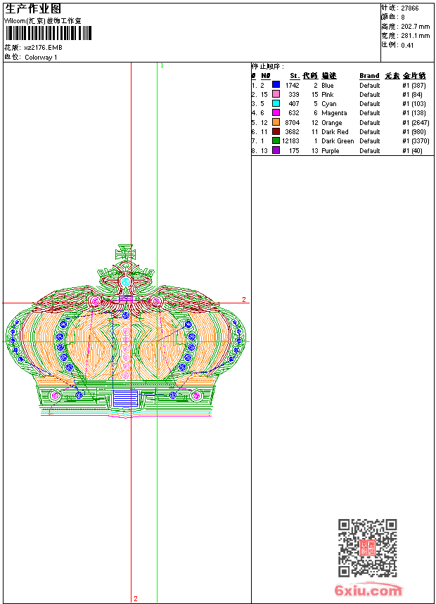 - 版带文件需绣花软件方可打开,可配色打印导出各种格式或直接上机绣。如无绣花软件可下载1:1模拟效果图。