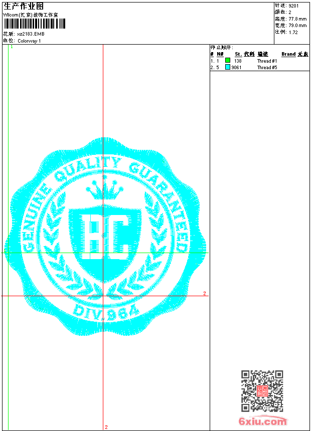 - 版带文件需绣花软件方可打开,可配色打印导出各种格式或直接上机绣。如无绣花软件可下载1:1模拟效果图。